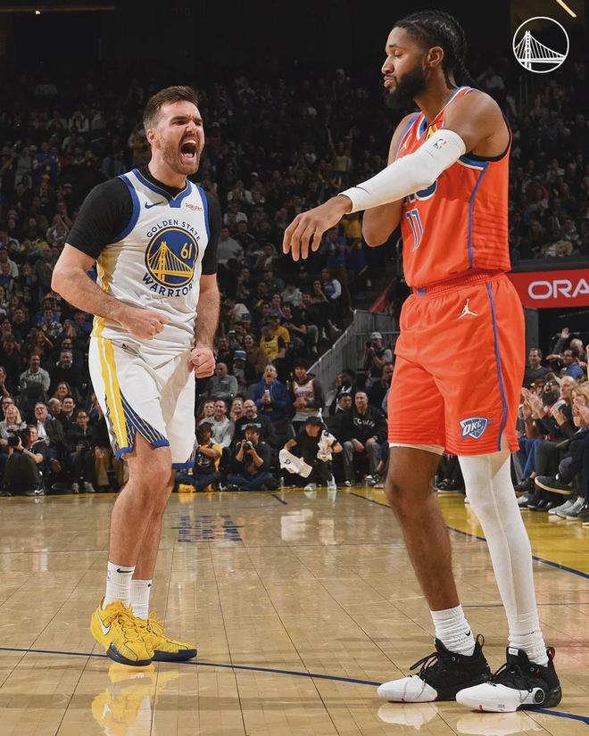 后场无人可用的情况下,勇士将双向球员斯潘塞调入首发阵容,这是后者NBA生涯至今第一次首发出战。
